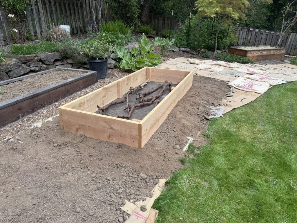 Ultimately, the job went really well. The newly built beds were put in front of last year’s built beds, slightly offset towards where most of the sun shines.