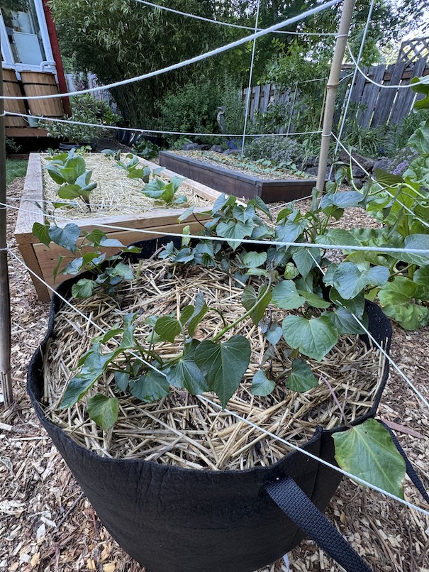 Wait, if there are only 4 tomatoes; what’s that 5th bag for? ๐ Great question. This is a late addition and seemingly random crop that was gifted to me by a neighbor with no need for it.