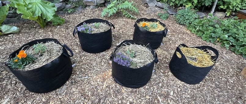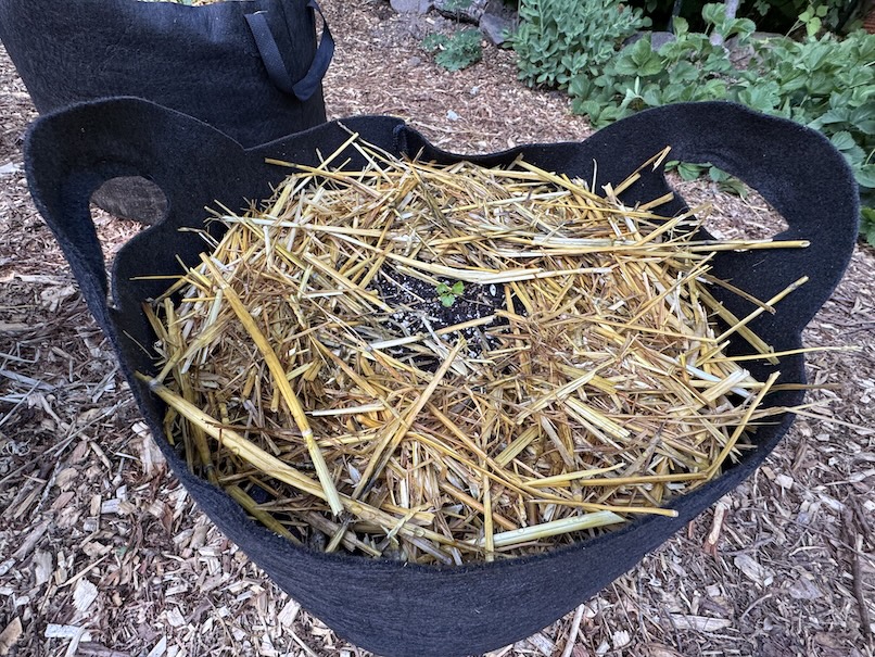 In-between the new beds is a wide-open freshly mulched area that is perfect for … grow bags! I’m most excited about this aspect of the home garden since growing in bags is brand new to me.