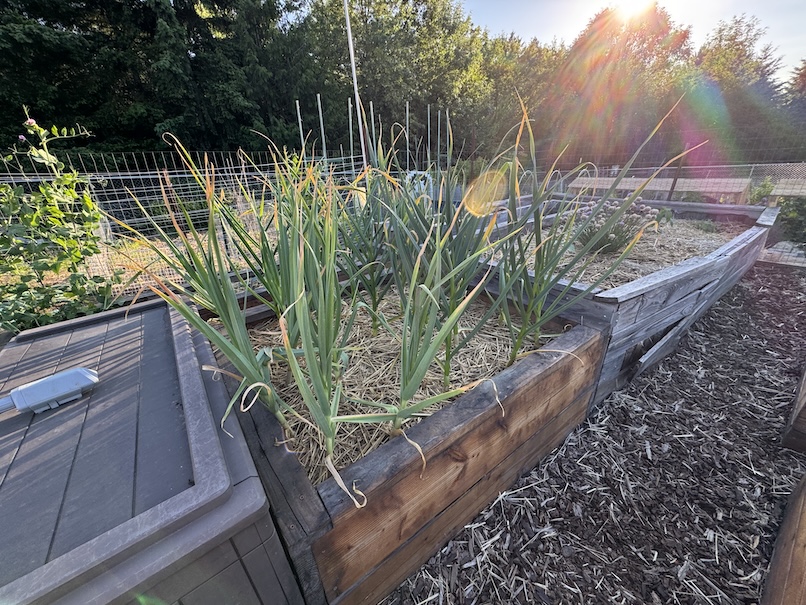 Garlic! I’m STOKED For the garlic. I don’t actually think I covered garlic in any previous blog post so this might come as a surprise to past readers, but back in October I planted 25 cloves split equally into 3rds with two hardneck varieties and a softneck variety. A lack of experience and staying mostly hands off hasn’t derailed them in any way as all 25 seem to be thriving. After harvesting the hardneck garlic scapes, the belief is that timing-wise we’re just a few weeks away from harvesting all the bulbs. Information floating around the interwebz indicates that garlic cures well, so we should have fresh garlic to last for quite a while (and to give away!). Added to the fact that you can’t buy hardneck garlic in grocery stores, I’m extra pumped for a long season of bad breath.