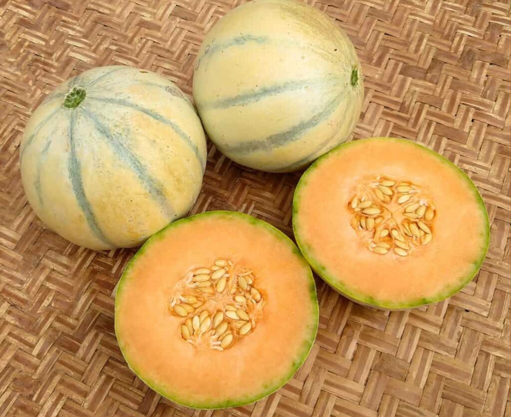 Next up, we have the main event and the title of this post. I want you to say this three times fast. You ready? Charentais Superprécoce Du Roc ….. melons! a.k.a a French cantaloupe.